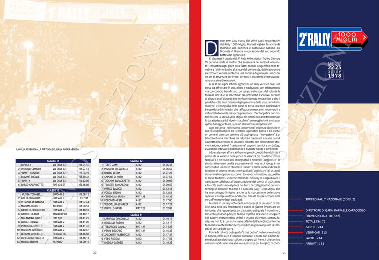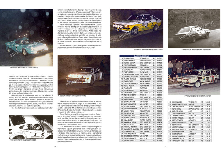 In 344 pagine nel formato cartonato 24x33 la storia completa con elenco iscritti, classifiche, tempi, prove speciali, protagonisti e racconto di tutte le edizioni, dal 1977 al 2015, corredata da oltre 600 immagini di un rally mitico che nel suo albo d'oro annovera i migliori interpreti del rallysmo italiano degli ultimi quarant'anni.